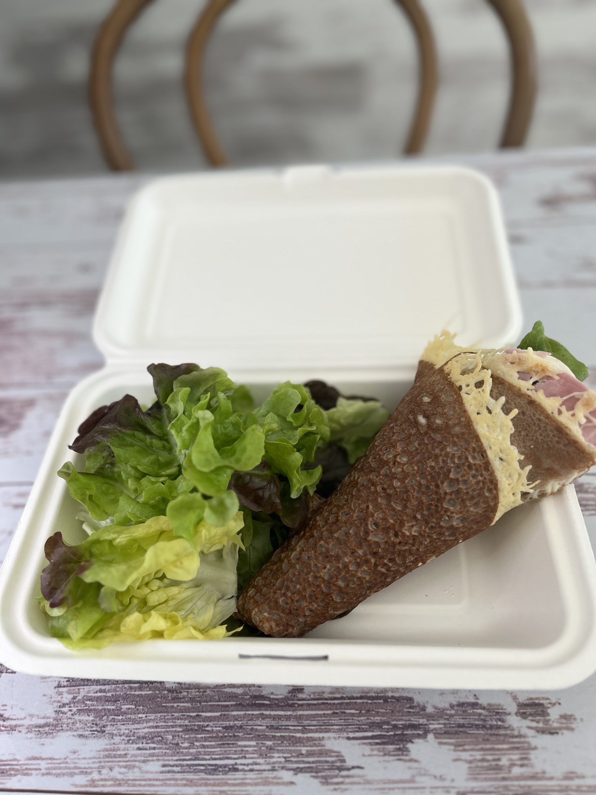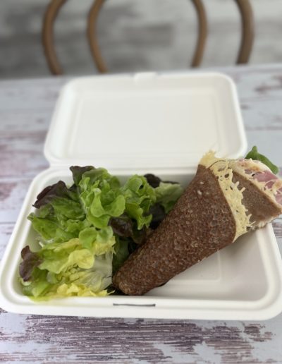 En effet, Vincent, repreneur de La Gavottine, élabore ses recettes avec des produits bruts, frais et locaux au maximum. La sauce aux 2 moutardes, la béchamel au Comté, Le caramel beurre salé, sont faits maison. La pâte à crêpe et galette sont faites à la main, au fouet selon la recette secrète familiale transmise depuis deux générations*.